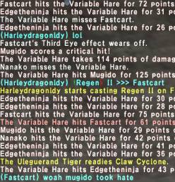 By the way, Edge and Harl are back as you can see. They were disappointed that they weren't around to see Mugido attain level 50. So disappointed in fact that both Nanako (level 46) and Yarga-Umiga (level 38) attained new levels themselves today. Mugido and I are both happy that the gang is back together. We also wish to thank the Salvation crew for helping us in their absence. Thanks guys.
