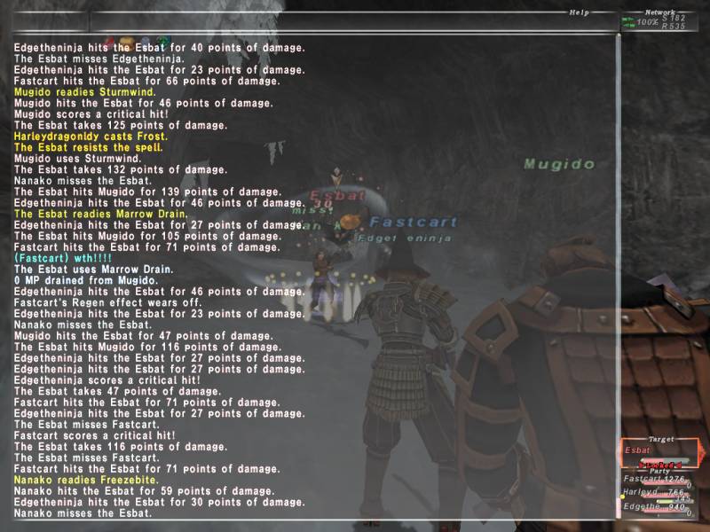For some random reason, Mugido decided to use Sturmwind way after I used Sidewinder. This was after he made a critical hit. So, for the fifth or sixth day in a row, he took hate... The Esbat then started wailing on him of course. Luckily, he can take a few hits now.