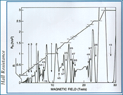 Discovered here at the Francis Bitter Magnet Laboratory by Horst L. Stormer and daniel C. Tsui October 7, 1981 using a 23 tesla Bitter Magnet. For this discovery they and Robert B. Laughlin were awarded the 1998 Noble Prize in Physics. *from Willet, Eisenstein, Stormer, Tsui, Gossard and English, Phys. Rev. Letters 59:15, 1776-9 (1987). |
