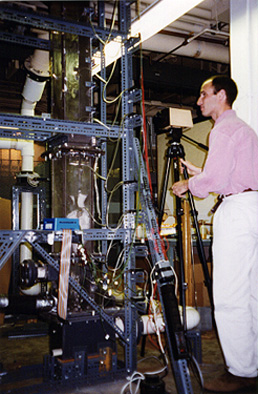 Pressurized fluidization is a promising new technology for the clean and efficient combustion of coal. Its principle is to operate a coal combustor at a high inlet gas velocity to increase the inflow of reactants, and at an elevated pressure to raise the overall efficiencey of the process. Unfortunately, commercialization of large pressurized fluidized beds is inhibited by uncertainties in scaling up units from the current pilot plant levels.