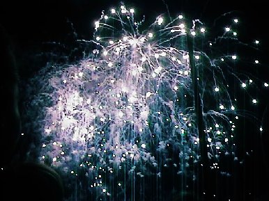 Bosoton Popsの演奏と花火というともっと地味なものかとおもったら、最初からびっくりする出し物でした。Stealth戦闘機が目の前を飛んでいるのをみるのも始めてでしたが、超低空を翼を振って挨拶したのにはみんな大喜びで、思わず拍手してしまいました。Ladarに見えないStealthですが、エンジン音も大変静かで、超低空にも関わらず、プロペラ機より静かなので、最初は、大きな凧のようにもみえました。冷戦の終結で、こういう場所にしか仕事がなくなったのは大変結構なことです。演出も大変凝っていて、最初にコクピットとの通信を聞かせておいて突然予告無しに現れ、あっという間に目の前を通り過ぎる。そのあとで、「もう一度みたい?」と聞く念の入れ様で、2回みせてくれました。