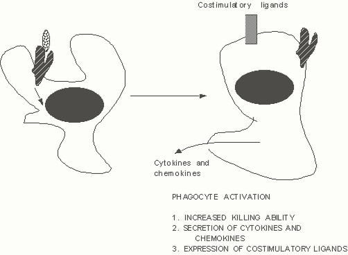 Figure 6. Activation of phagocytes induces microbicidal activity, but also contributes to cytokine and chemokine secretion, and the expression of costimulatory ligands.