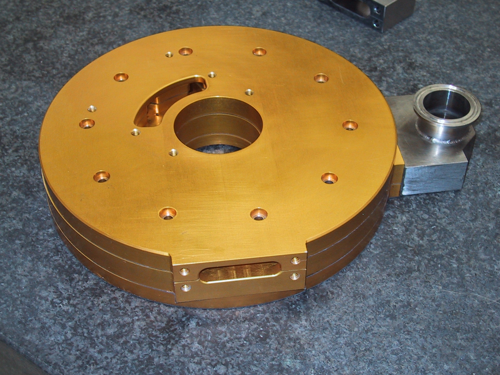 - This is a photograph of the actual prototype manifold. Each of the three sections are visible (the left most and middle layer have been flipped upside down to give a better view of the interior). The manifold contains three separate chambers inside it which funnel air to the Expander Inlets, and from the Compressor and Expander Discharges. The hole in the center of the manifolds provides air to the compressors.