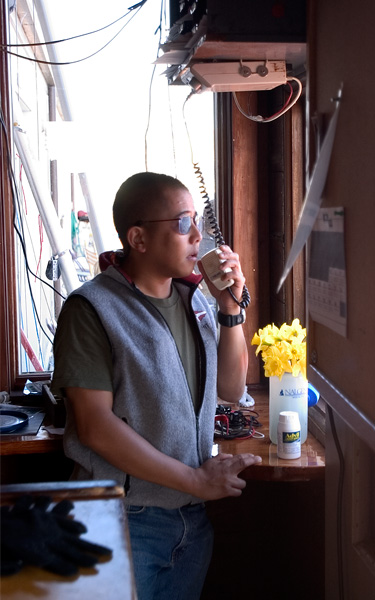 | Two-way radios keep the pavilion staff at the dock in contact with others on the river. When the dock staff notice someone in need of help, whether because they're capsized or otherwise, they radio launches on the river to give the sailor a hand. |