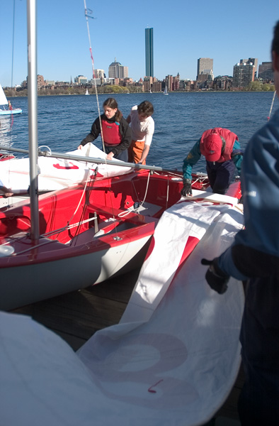 At the end of the day, boats are pulled up onto the dock, sails are rolled and stowed...