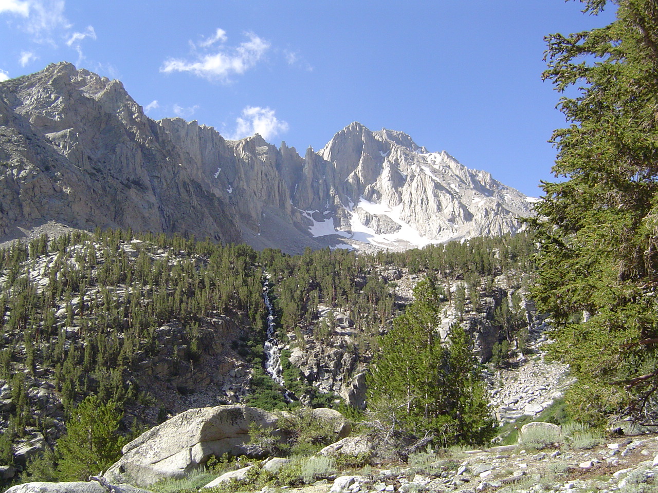 | Day 4: The waterfall partway up towards Kearsarge; we've just topped a small ridgelet. The hike up to Kearsarge is a lovely day hike if you don't want to cross the pass; I've done it twice before, once when I was very young. |