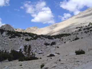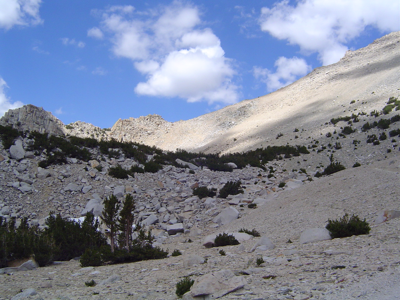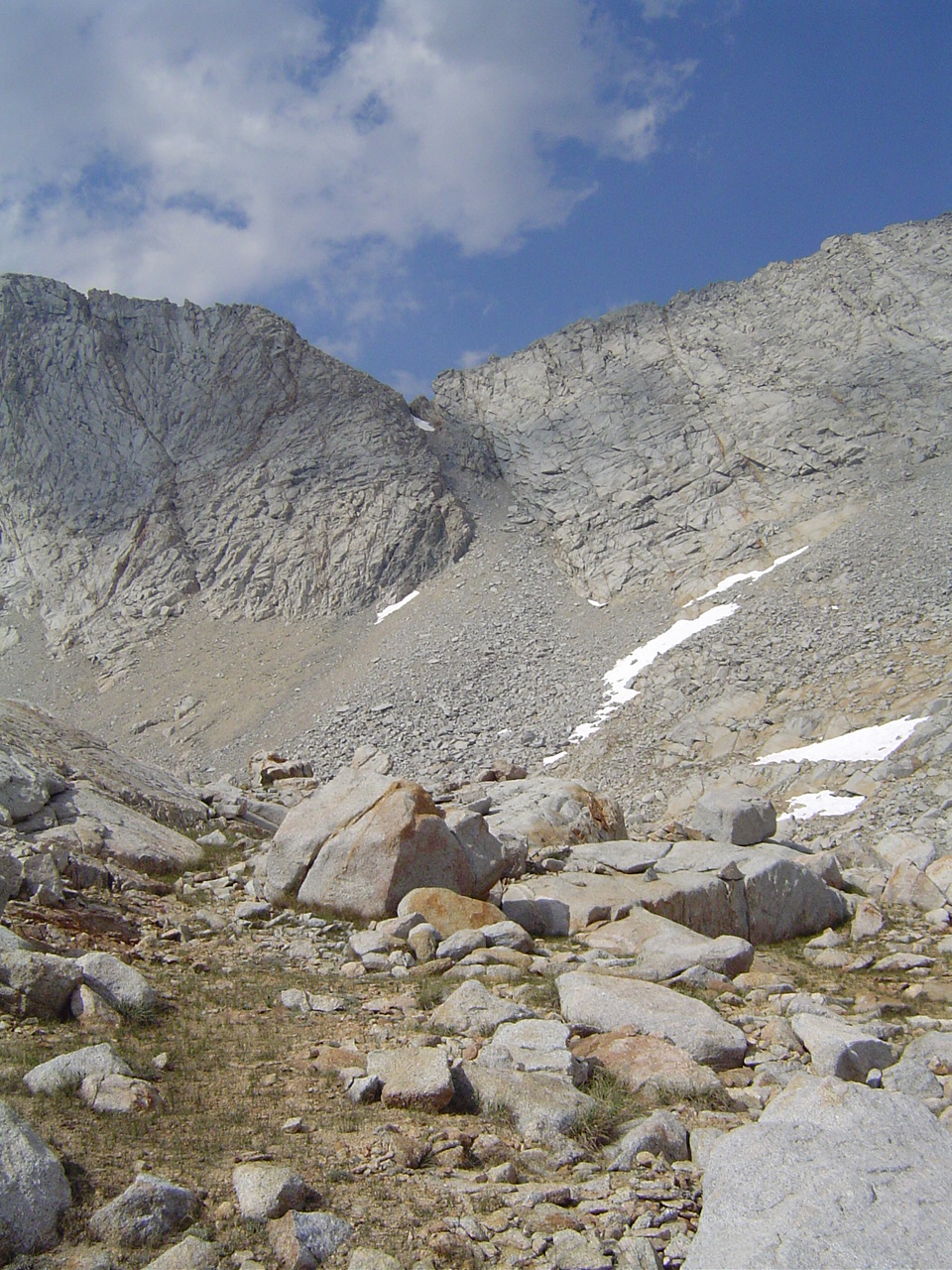 | Day 4: East Vidette Peak (13,350 ft), upon whose knees we slept. It blocked the sunlight very effectively. |