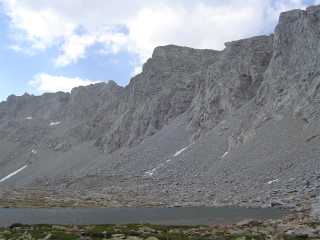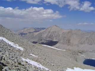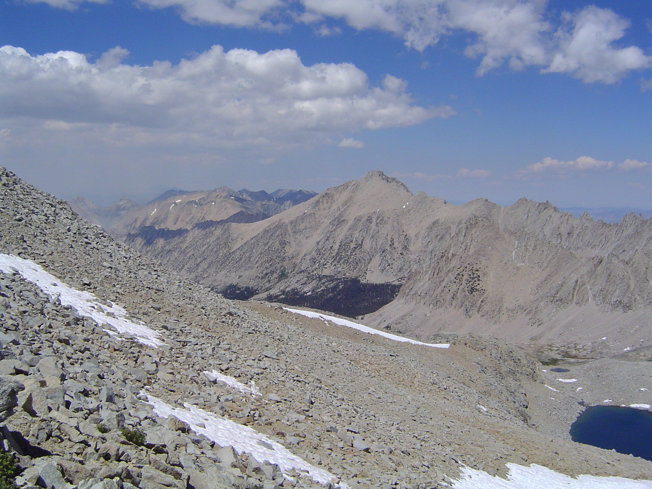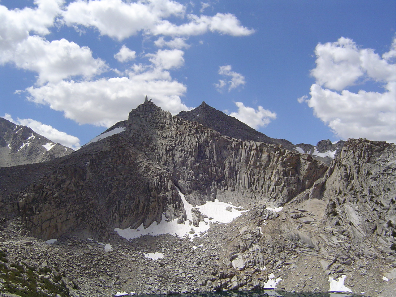 | Day 6: Mt. Whitney's backside, again. It's the one with the parallel lines of snow in the bigger picture. |