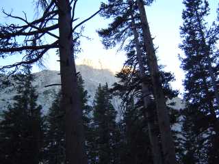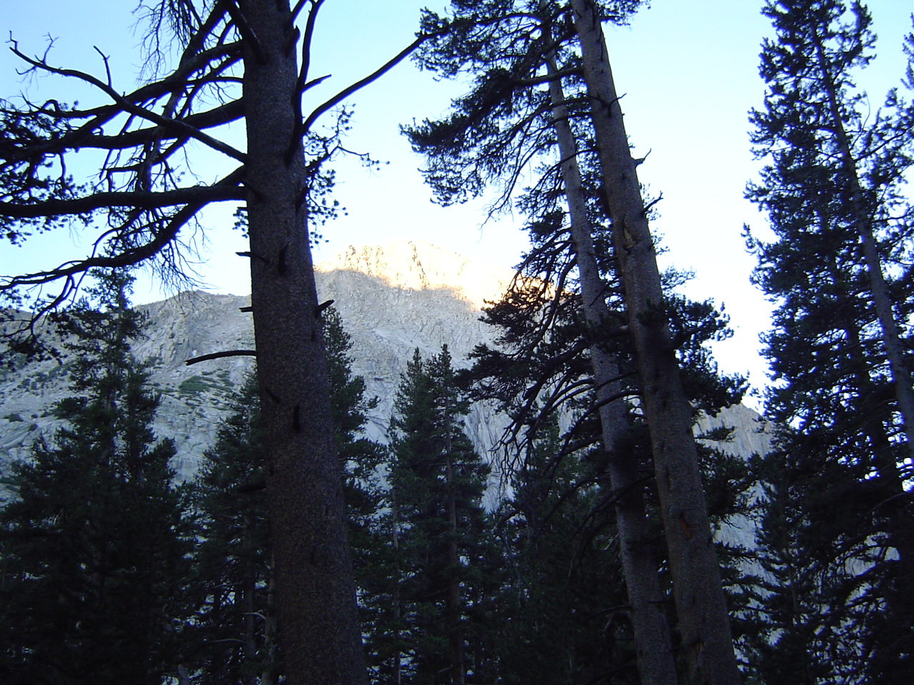 | Day 5: East Vidette Peak by dawn - silly lighting, but a very lovely sight; the sunlight was welcome on the start of the really big day. |