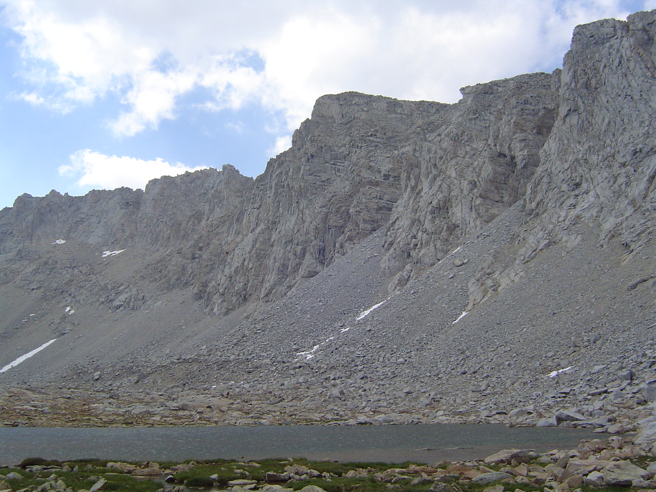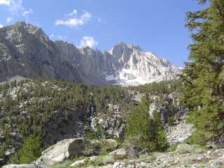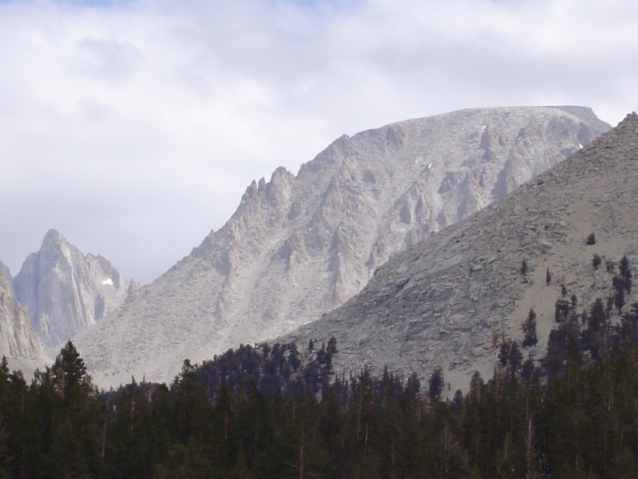 | Day 6: Whitney's backside, a closer view. I've hiked this peak 2.5 times (the second time we turned back due to heavy snowcover) and it never fails to amaze. Pity there are so many people who agree with me these days! |
