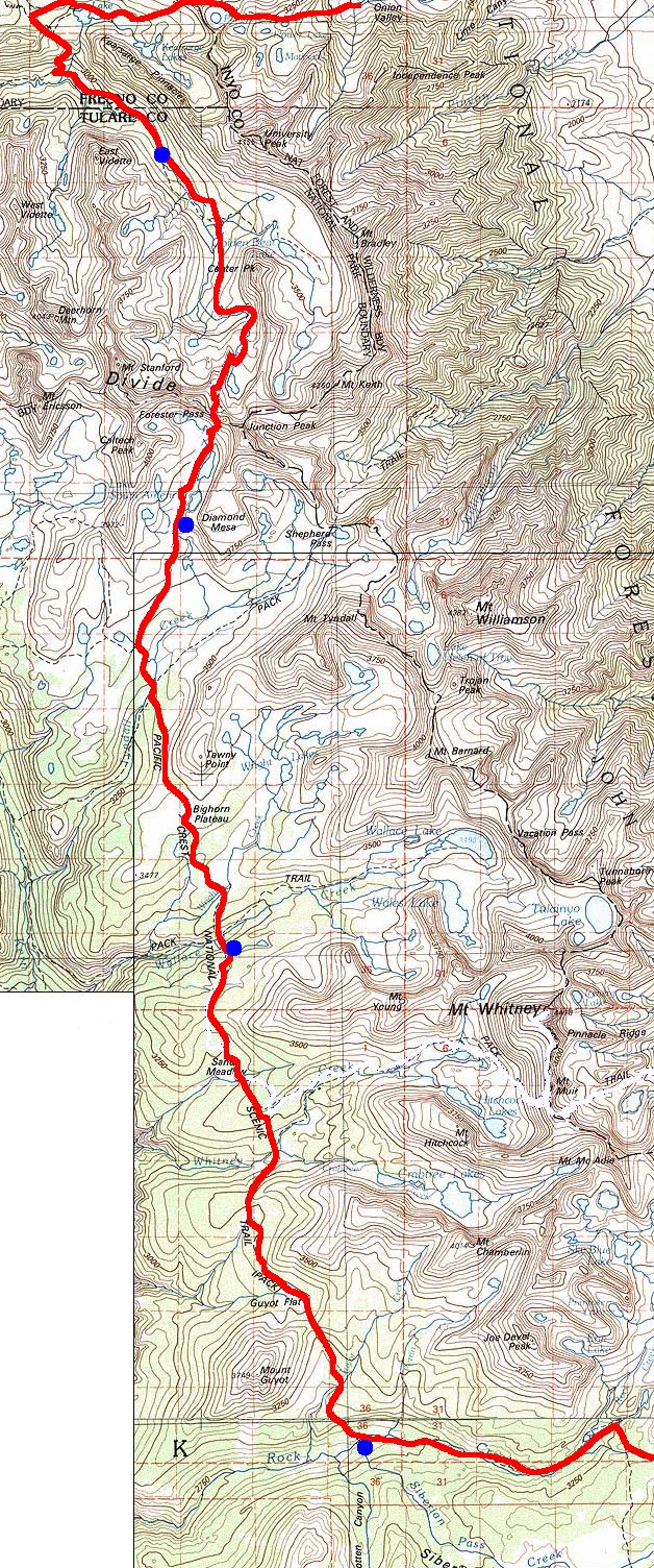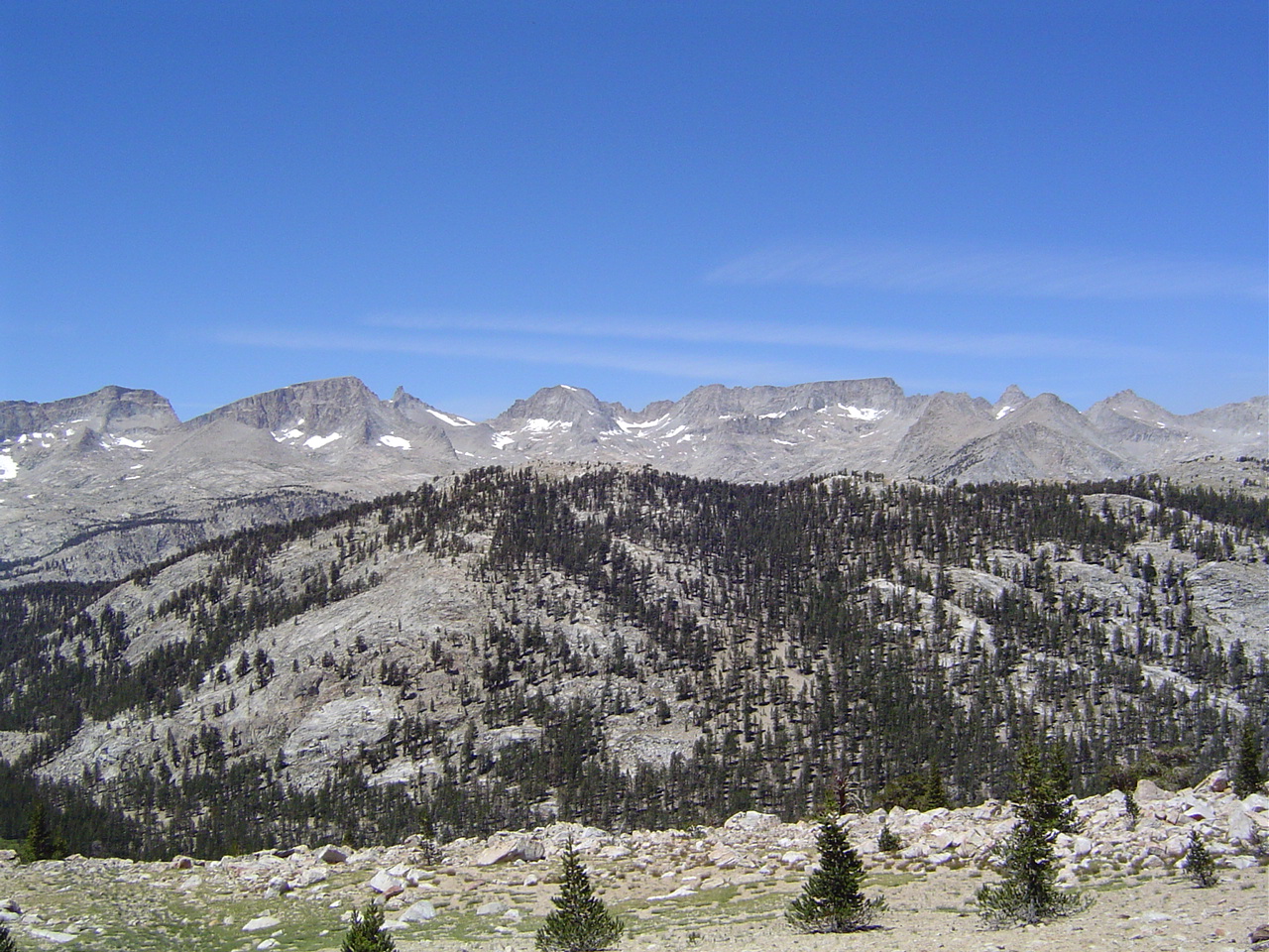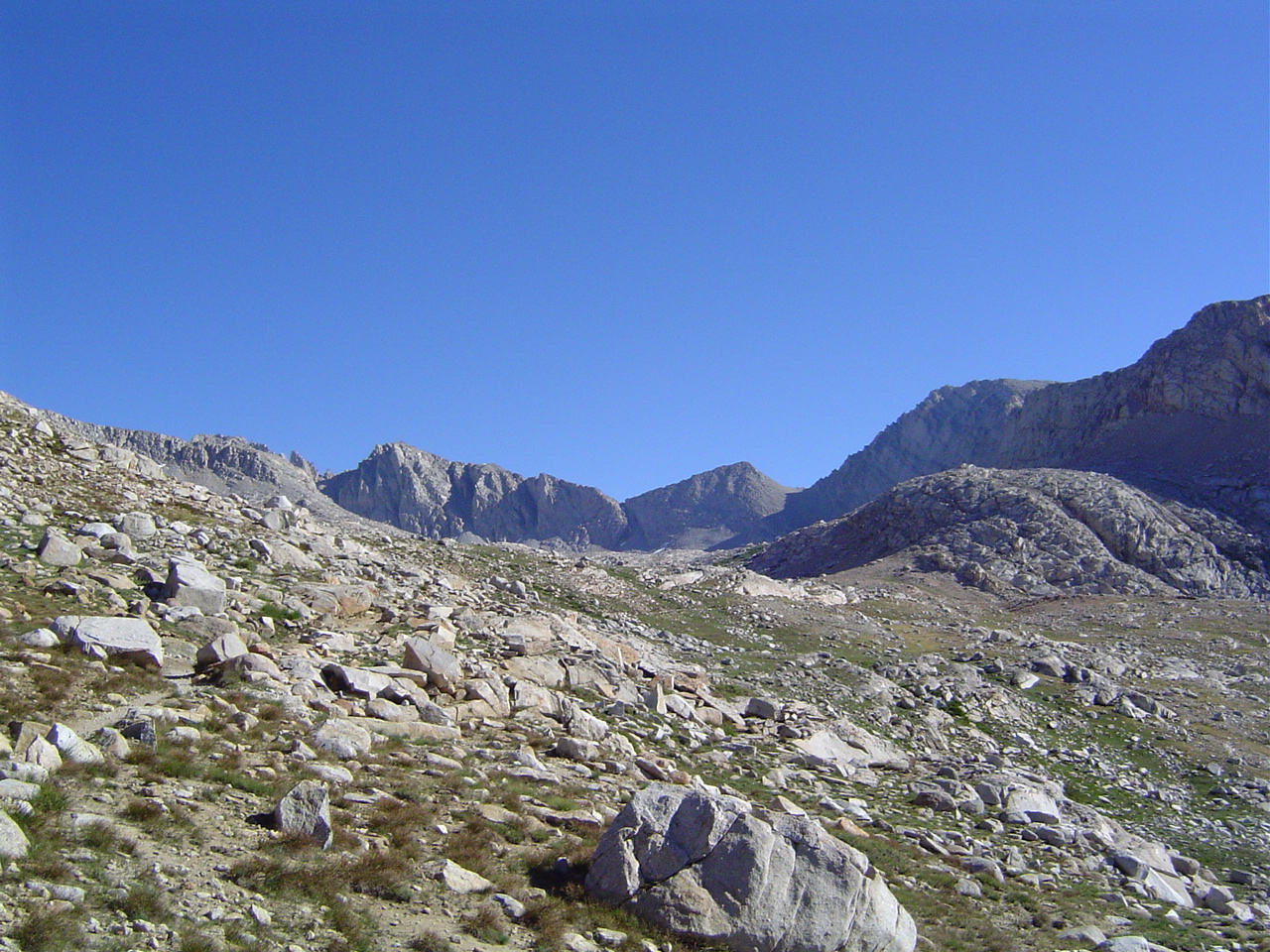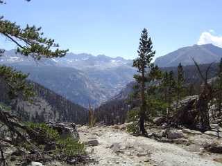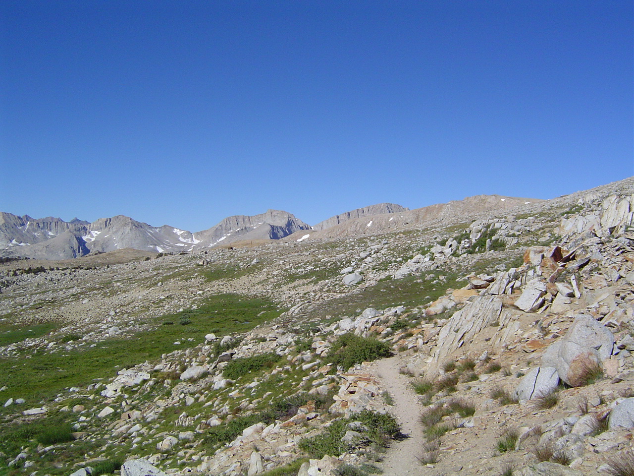 | Day 6: The trail out of Tyndall Creek was very steep, but the views at the top were lovely. The Divide and the beginnings of Kern Canyon were among the landmarks of the day. |