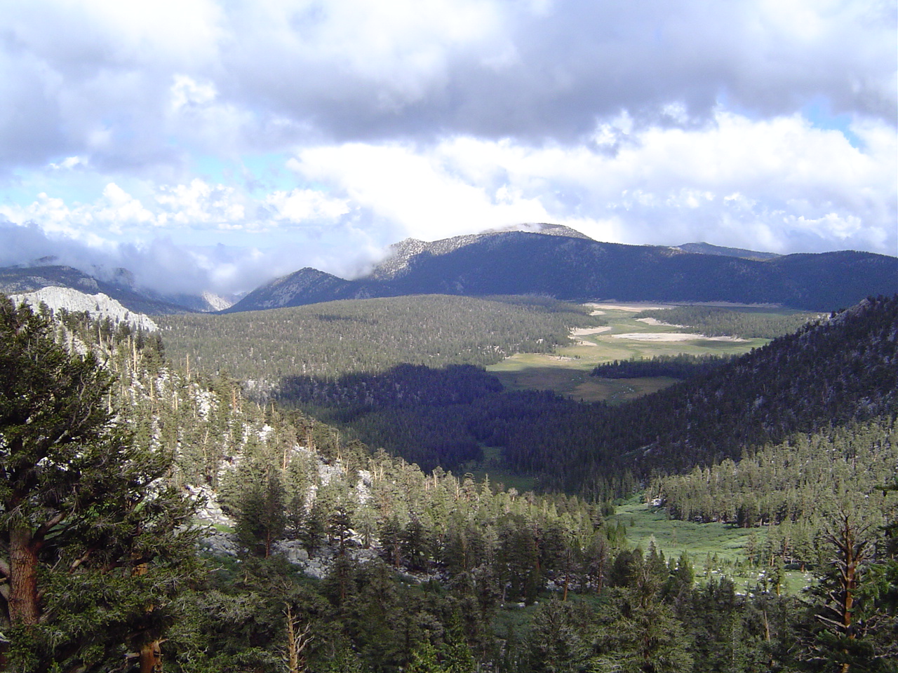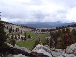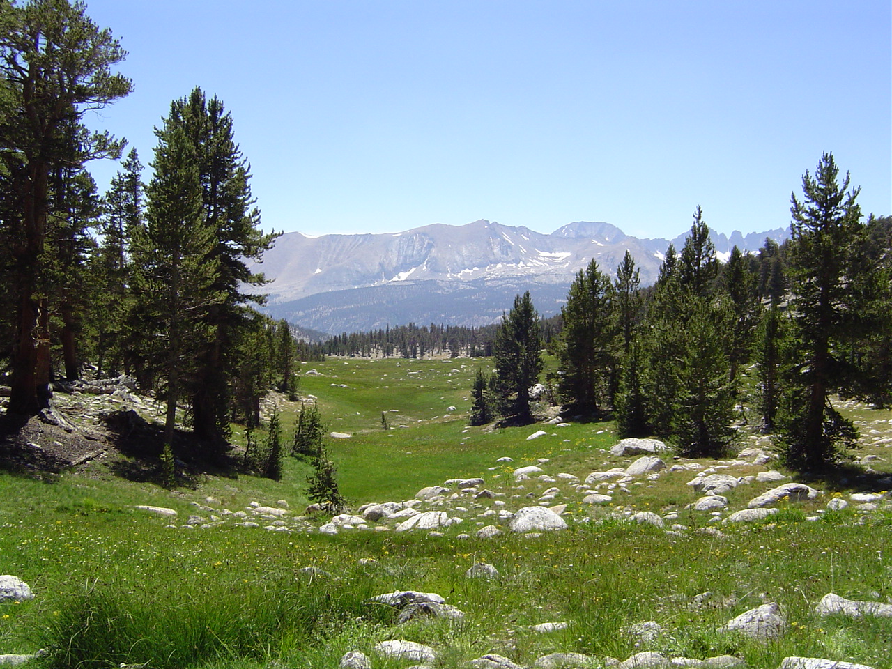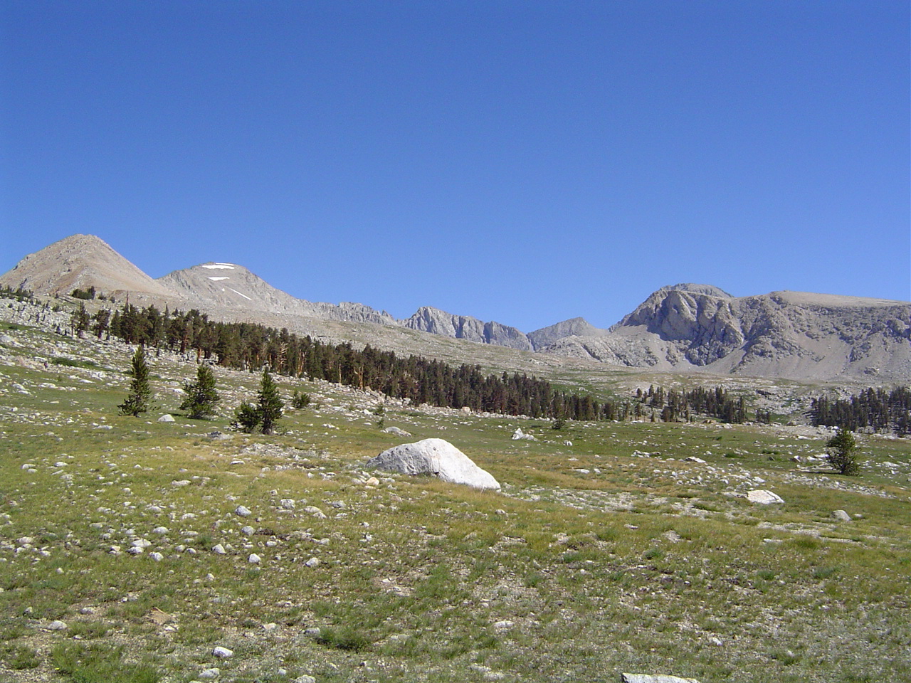 | Day 7: Looking across the Meadows towards the Crabtree Lakes and Mt. McAdie. |