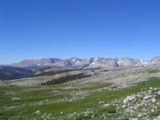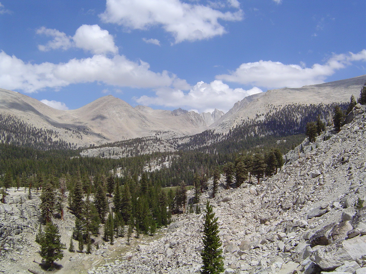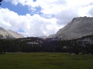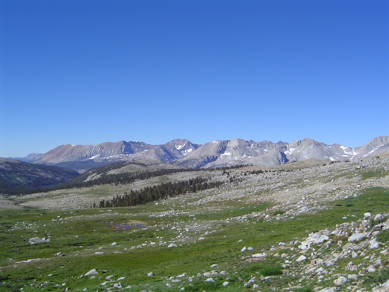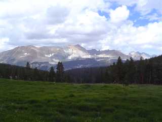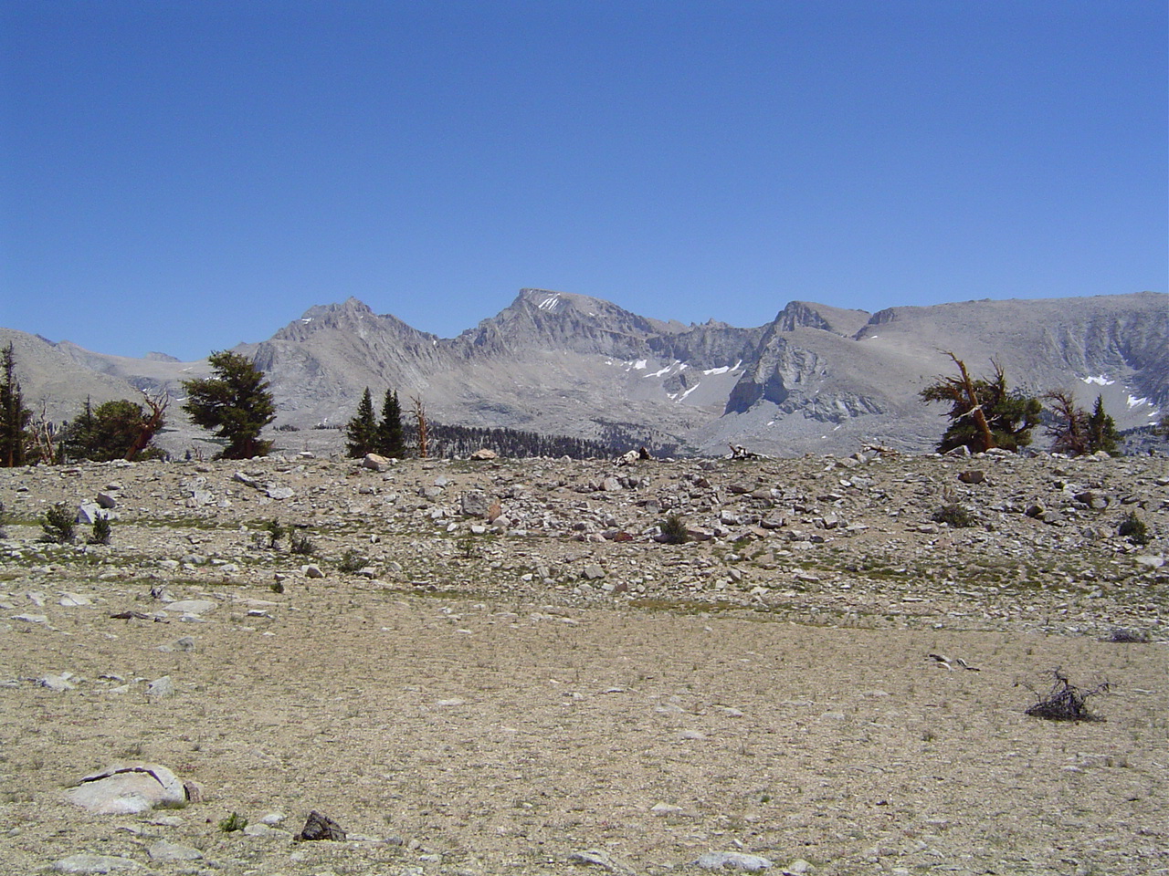 | Day 7: Looking across the Meadows towards the Crabtree Lakes and Mt. McAdie. |