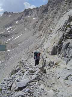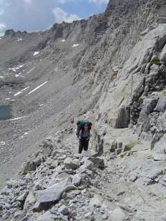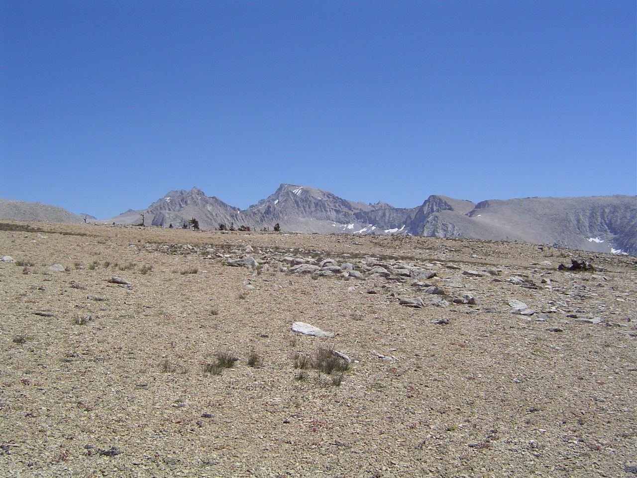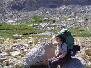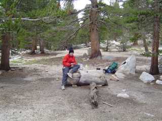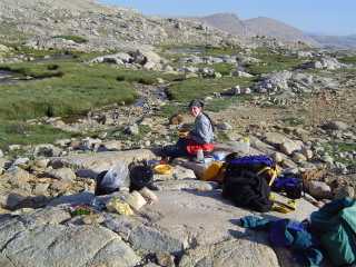 | Day 4: The top of Kearsarge, a major landmark and our entrance to the High Sierra. It's a popular spot for people doing the JMT or the PCT to resupply, as it's not far to Onion Valley from here. |