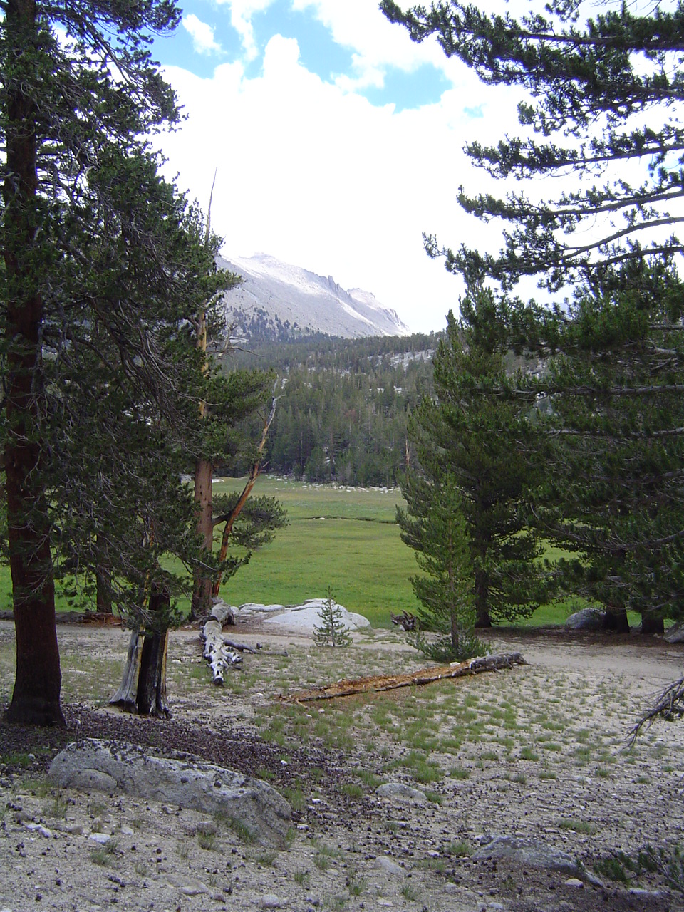 | Day 7: Beautiful meadows past Wallace Creek (I think this is Sandy Meadow?), but not as lovely as Crabtree. We saw an ermine somewhere around here. This is a fairly big meadow for this elevation, and it's not so wet as the smaller ones. |
