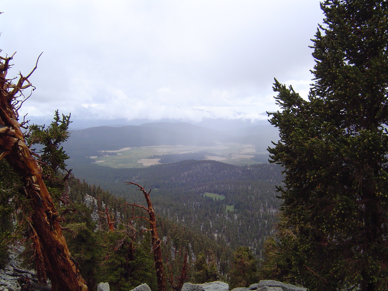 | Day 6: Again, looking back towards Forester; at this point we've begun hiking in trees for the first time in 24 hours. |