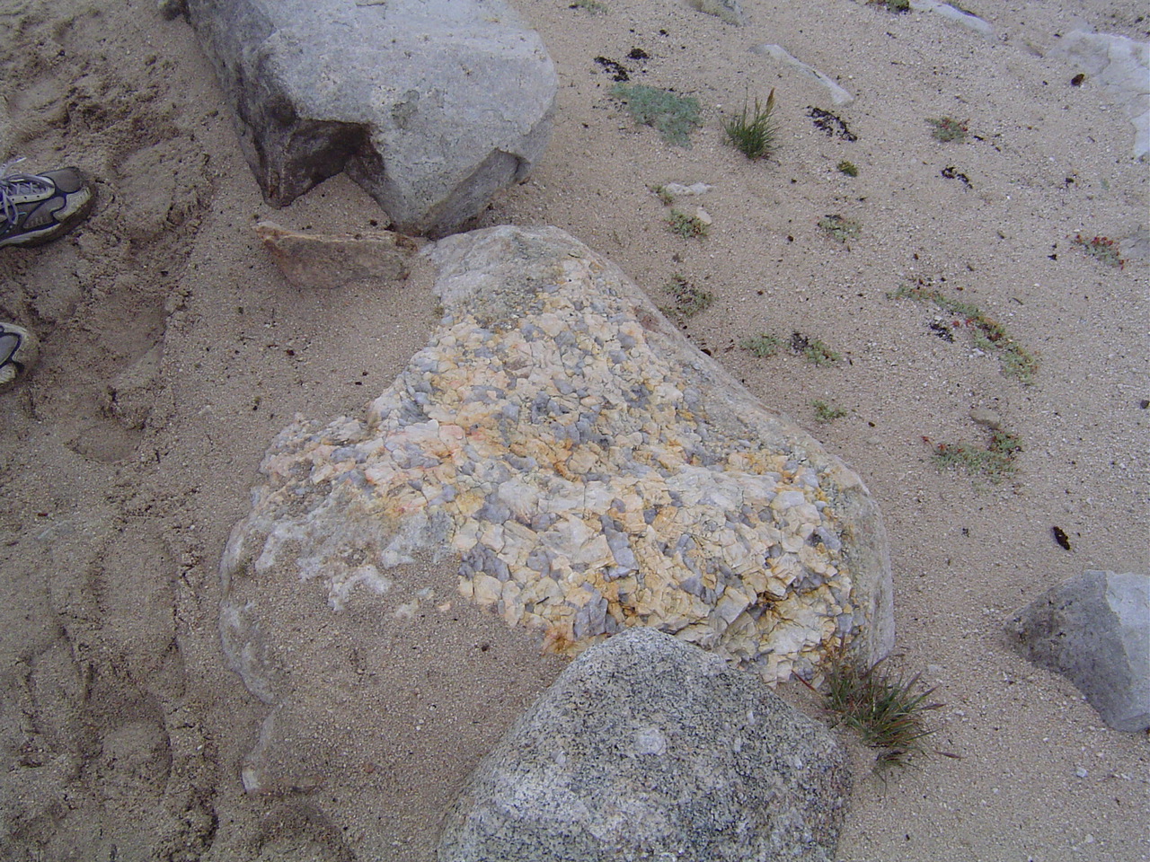 | Day 8: I thought this rock was very cool, even if the trail by it was harder to walk in than damp beach sand. I just liked the colors and the texture. |