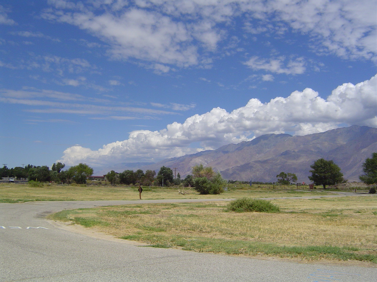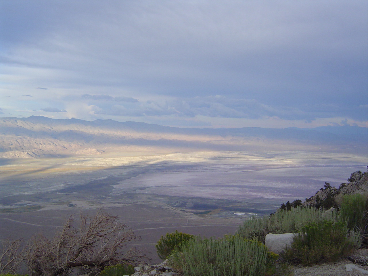 | Day 9: The Inyos were cloudy too, though not as covered as the Sierra. The sky above the valley was mostly clear, with high cirrus and cumulus clouds. |