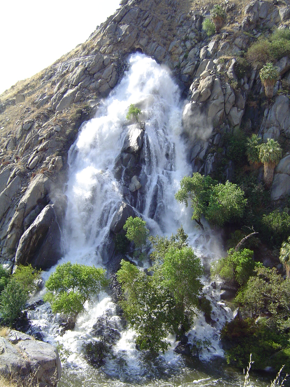 | Day 9: Winter/spring snowmelt made the Kern River very full this year, so excess was piped through the canyon in an aqueduct and released here. |