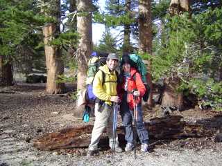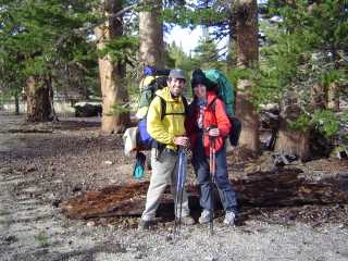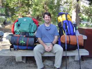 | Day 4: At Onion Valley, about to start out - my father. My pack is on the left, his on the right. |