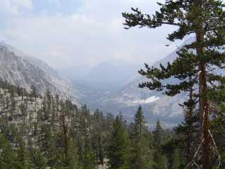 | Day 4: Our first view of Bubbs Creek Valley, the gateway to Forester Pass and the site of our first camp. Water and plant life were plentiful here; bears were a big concern, so we bypassed several campsites in favor of one farther away from other hikers. |
