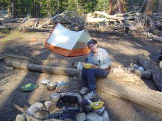 | Day 5: Me eating freeze-dried lasagna - one of the best meals of my life after Forester. The melted cheese was fabulous. I wasn't sure about this freeze-dried food thing before, but now I think it's great. Plus it weighs literally next to nothing. |