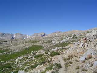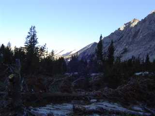 | Day 5: Early still, looking up Bubbs Creek towards Forester Pass. There were very few people on the trail this early in the morning. |