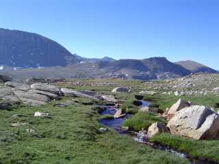 | Day 6: Wow! Greenery again! Meadows are a great place to visit, but sucky to camp in - lots of standing water, delicate vegetation, and lots of mosquitos. |