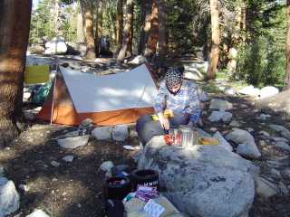 | Day 7: When one stops hiking, one gets cold. Crabtree may be sunny (though it was somewhat cloudy today), but it is at 10,400 feet or so above sea level... |