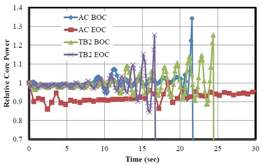 Stability of RBWR AC (Breeder) and TB2 (Burner) during loss of feedwater heater accident.