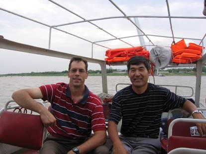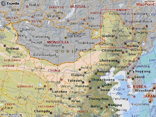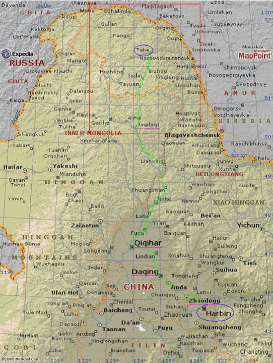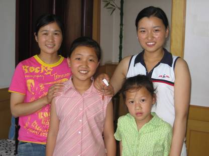 My adopted Oroqen family. The first picture has my little brother, my dad, and my mom, who is the director of ethnic and religious affairs in Tahe county. She was a MAJOR factor behind the success of our trip. The second picture has Lindsay, as well as my mom, my little sister, and her fiance. In this adopted family, my name is Sari (phonetically [sa:ri], with a long [a:], second syllable stress, and a somewhat palatized [s], but not so much as to be [S]).