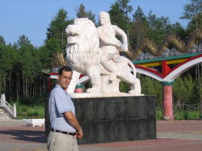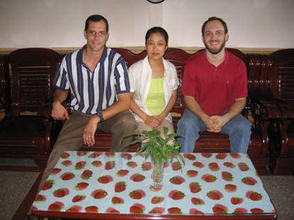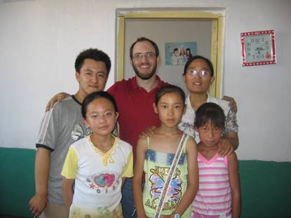 At an after-school program where kids learn English. I was the guest teacher this day – the first native speaker of the English that the kids had ever come into contact with. The first picture was taking at the end of the lesson (which I improvised for 75 minutes); the second picture (also after the lesson) is with the teacher (back right), her daughter (front left), the daughter of one of our friends (front center), and two other people. Apparently, the banner in the first picture says something or other about “This English class welcomes the American teacher” – I had no idea that’s what it said until several days after the fact... They must have custom-made this banner overnight!