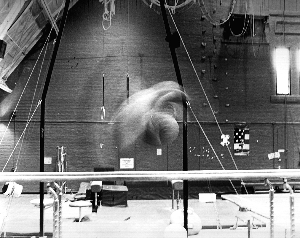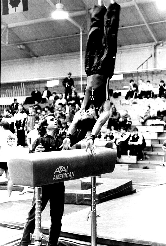 Coach Noah Riskin gives David Hu a much needed hand over the horse.