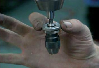 Sensitive chuck The first is to use a sensitive chuck. It's smaller, which makes it easier to hold small drills, but its main feature is that it's free to move along the long axis. Lock the sensitive chuck into the key, and instead of touching the quill, you can lower the bit by simply pulling down on the chuck. So even if your drill bit is difficult to see, it's possible to get a feel for what that drill is doing when it comes into contact with the part. Small drill pressAnother solution for small holes is simply to use a small drill press, which is basically just a smaller version of a full-size drill press. The main difference is that instead of moving the quill down to the table, the table is moved up to the bit. A small drill will also run at a higher speed -- around 10,000 RPM. |