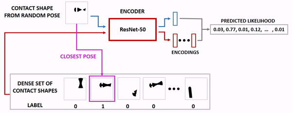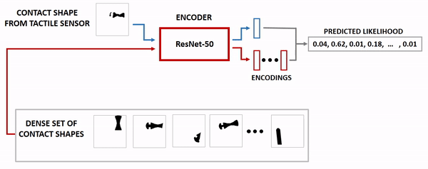 We match the estimated contact shape from the tactile sensor against a simulated dense set of contacts to predict a distribution over contact poses.