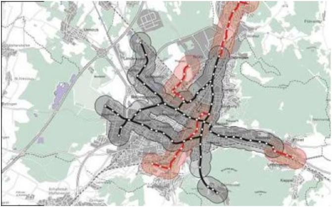 Freiburg is the only city in Germany where car ownership rates are on the decline. At 430 cars per 1,000 people, total car ownership in Freiburg is the lowest in Germany and even further below the U.S. average of 640 cars per 1,000 people. This trend can be attributed to the closing down of downtown Freiburg to cars in 1973, heavy investment in expanding the catchment area and ridership of Freiburg’s tram network. This expansion occurred at a time when many other cities throughout Germany were in the process of dismantling their tram networks. As a result, approximately 85% of Freiburg’s population live within the catchment of a tram stop, and car ownership rates are the lowest in Germany.