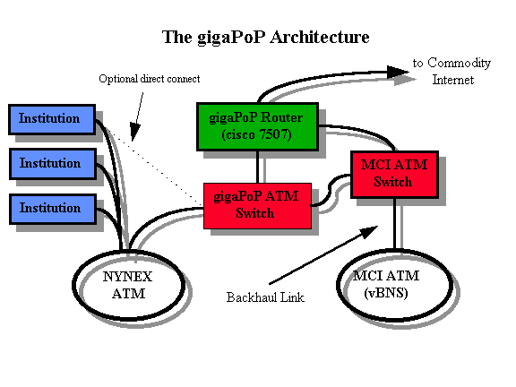 The gigaPoP will also provide direct ATM connectivity between member institutions and to the MCI provided vBNS service (and possibly the CAIRN network).