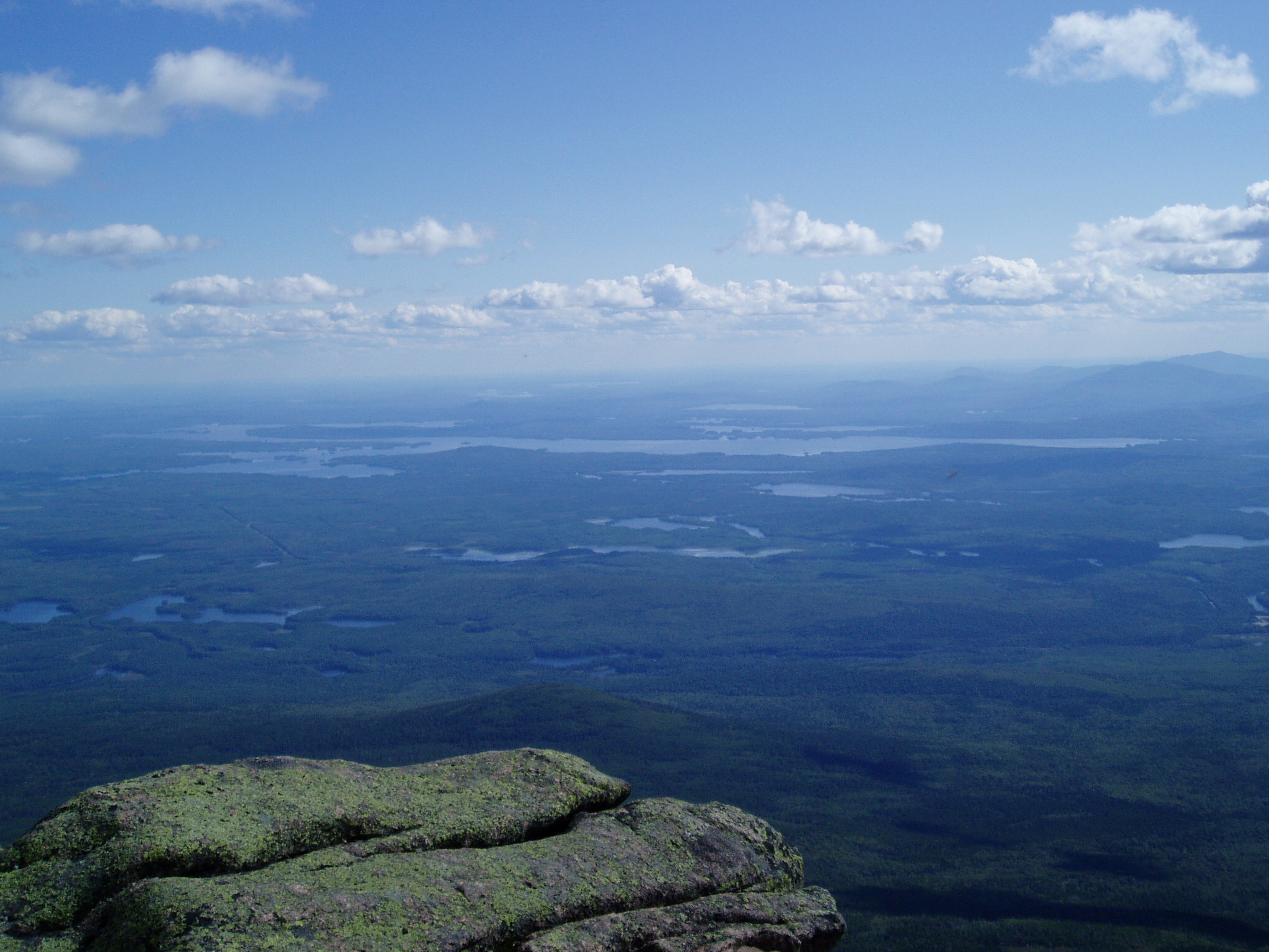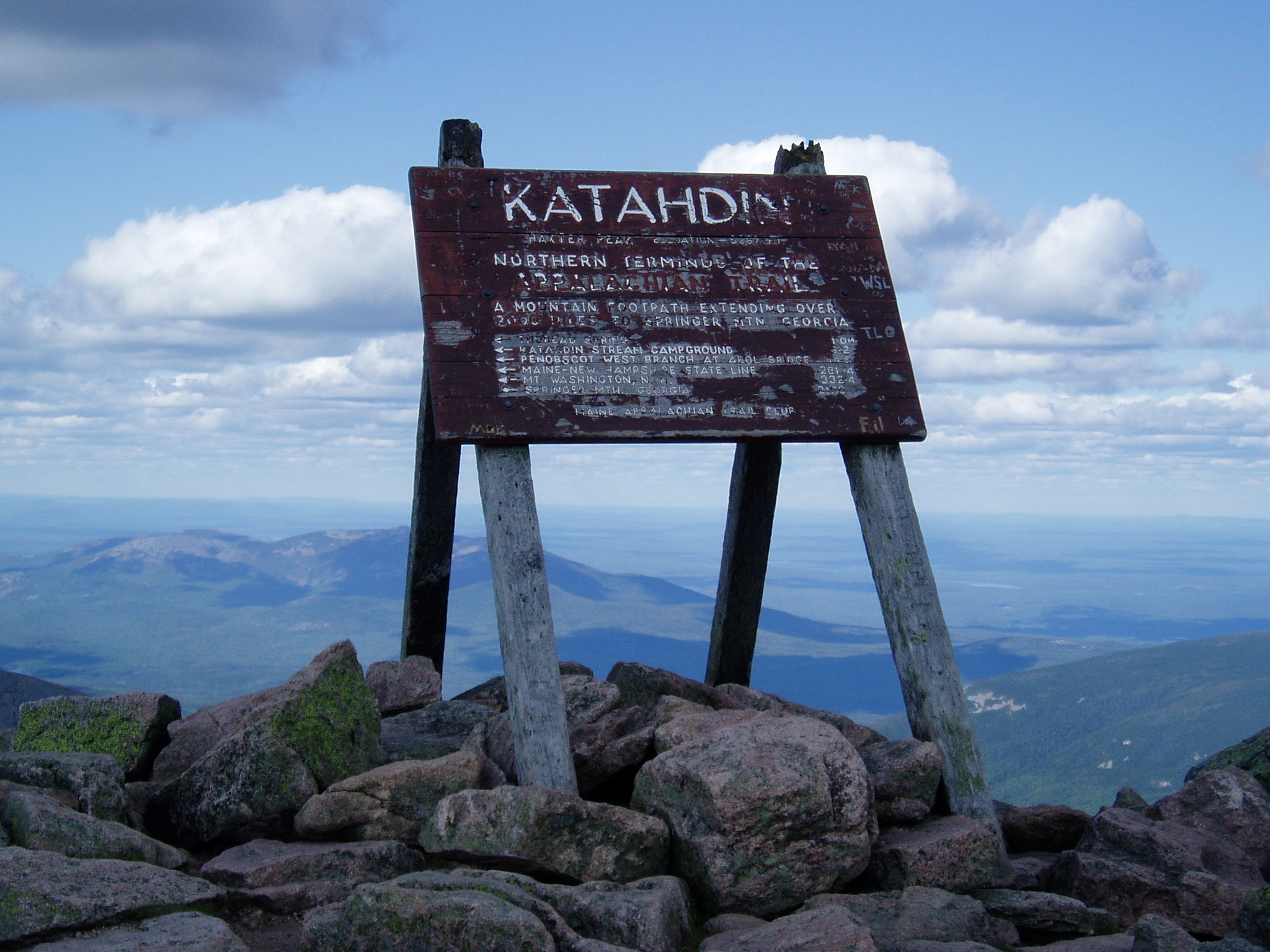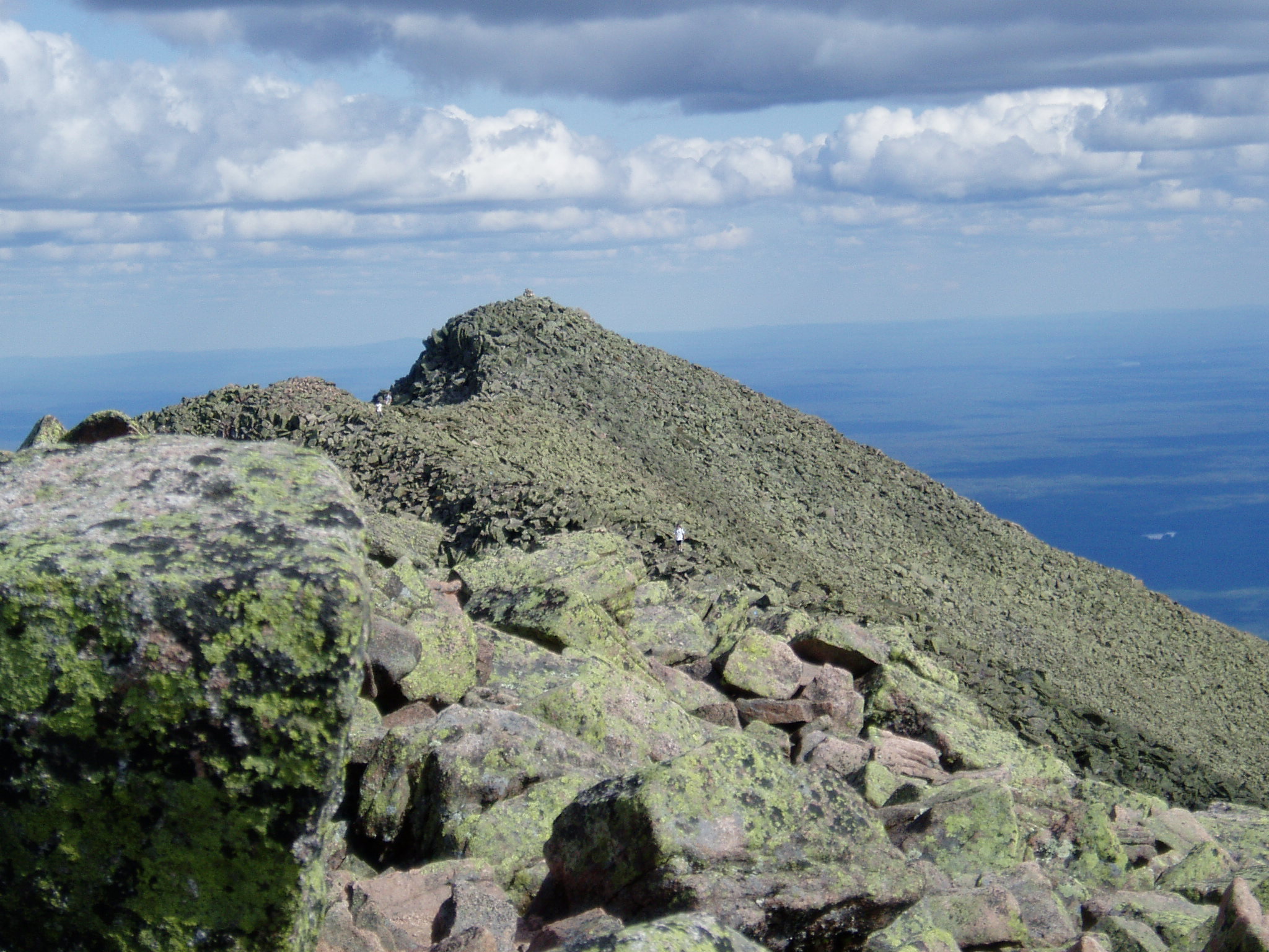 Soon after we finished the worst of the rock scrambling, we made it to Baxter Peak. We didn't savor the moment too long, though, since we had to make it back to the campground by nightfall, and we were slowly learning that we weren't as fast as our guidebook wanted us to be. So we took a few pictures, savored the panomaric views, and then began our hike home (back to our Lean-To).