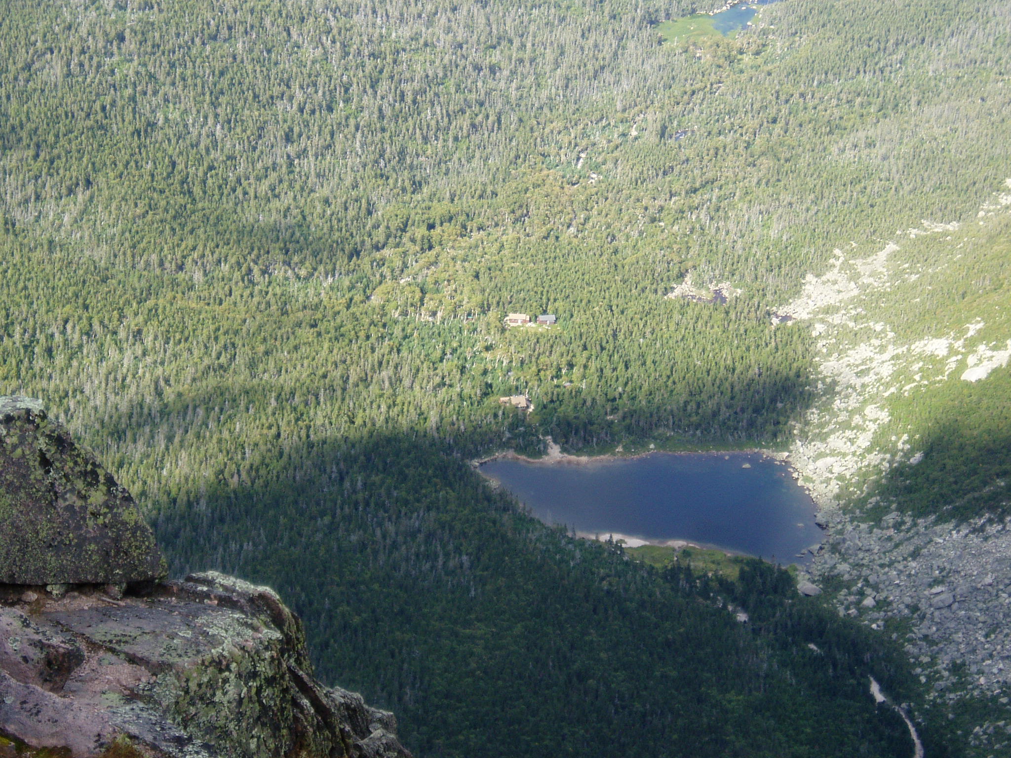 The pond in the picture below is Chimney Pond, where we spent Friday night. Directly above the pond is the camp site where we stayed (you can see the Ranger Station in the picture). Now we had to turn around hike back to down to the pond below.