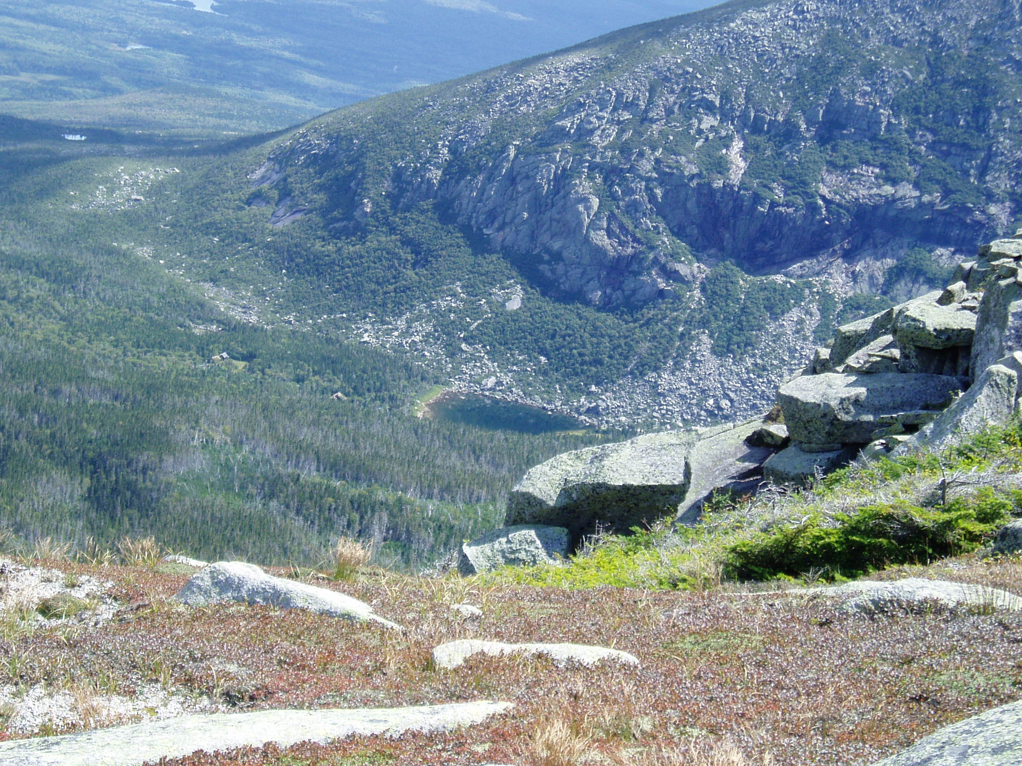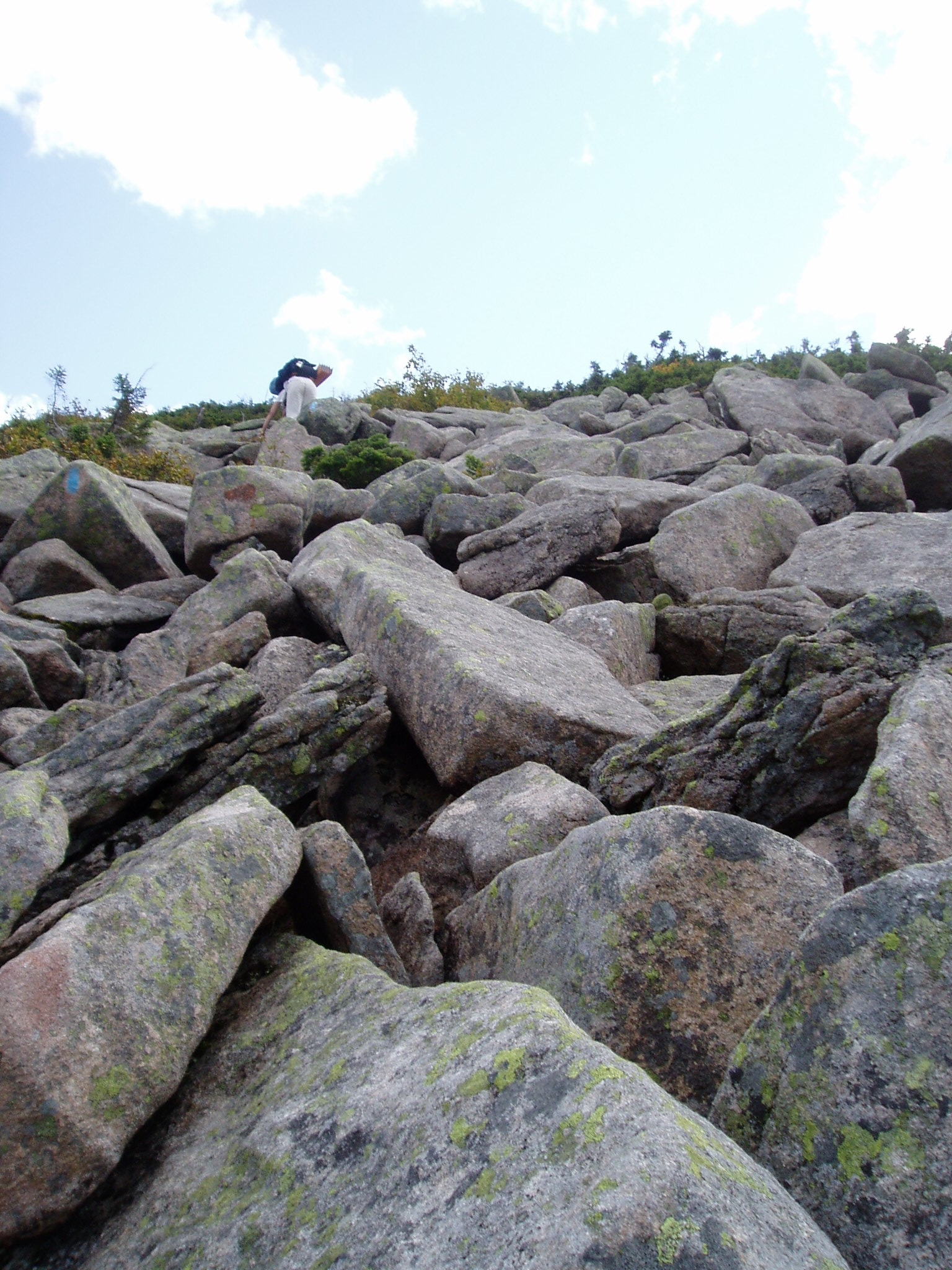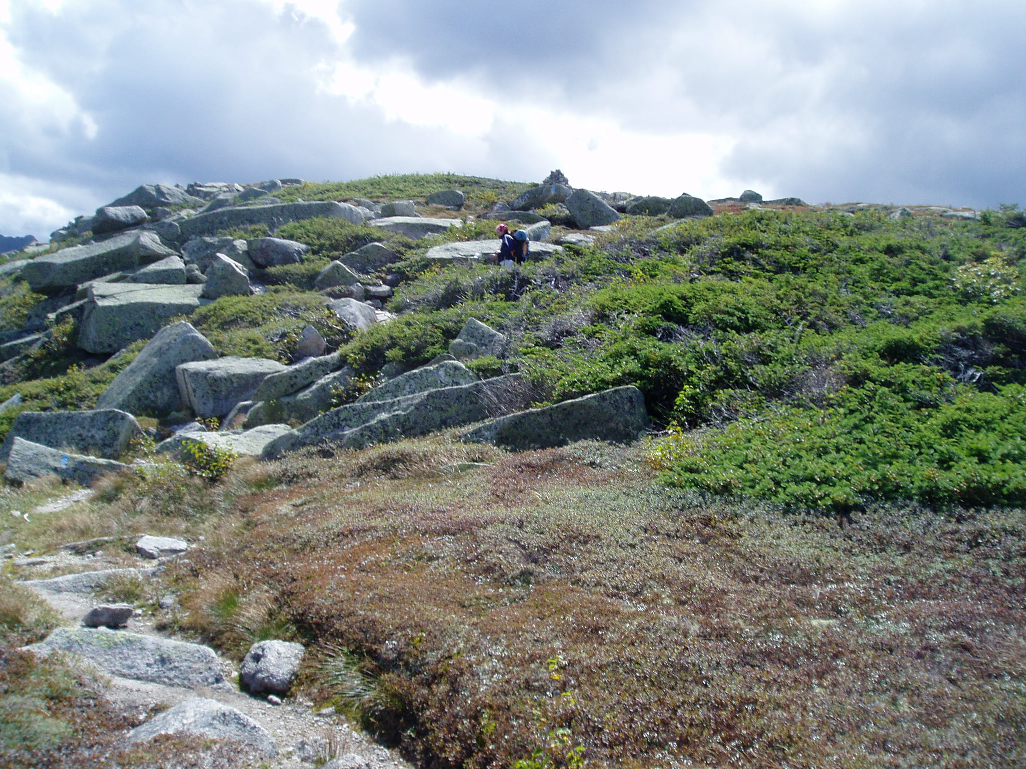 Our original plan was to hike to Hamlin Peak and then take the Northwest Basin Trail to Russell Pond (where we would spend our last night). We were advised by the ranger at Chimney Pond, however, to take an easier route by retracing the Saddle Trail up to the "Saddle" and then taking the Northwest Basin Trail all the way to Russell Pond. Being exhausted from the previous day, we agreed to his new plan (and besides, who wants to go the second highest peak in Maine after you just went to the highest), and so we set out at 9am to go up the Saddle Trail.
