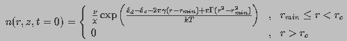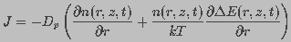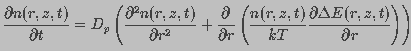 A change in pore density occurs due to the difference between expanding and restoring forces. Diffusion of water contributes to both expansion and contraction of a pore. This can be expressed in the form of a convection-diffusion equation. Let n(r,z,t)dr be the number of pores in the membrane with radius between r and r+dr at time t within a unit area of the membrane around z. The total change in n(r,z,t) is described by Smoluchowski equation (Gardiner, 1985)
