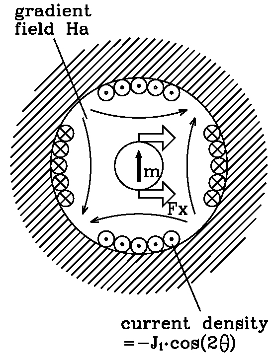 The dipole-quadrapole actuator uses a bias field to impose a dipole on the steel tube.
