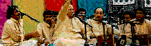 One of the most popular Pakistani singers today (at home and internationally is Nusrat Fateh Ali Khan; you can sample his music by pressing here and listen to the Qawalli Mera Piya Ghar Aaya . Some of my personal favorite Pakistani music include the sufi poem by Khawaja Ghulam Farid Mera Ishq Vee Tun(this is a very large file) as sung by the incomprable Pathana Khan; Ibn-i-Insha's ghazal Insha Jee Utho Ub Kooch Karo as sung by Ustad Amanat Ali Khan; and this renderation of the Punjabi folk song Bale Bale O Tore Panjaban Di! as sung by Farida Khanum.