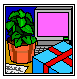 Potted plants break the monotony of clean, shiny floor and freshly