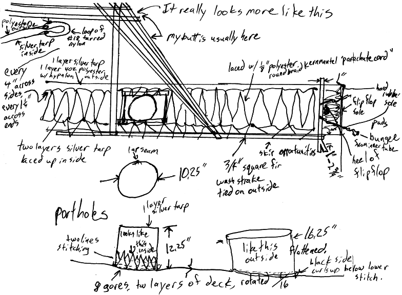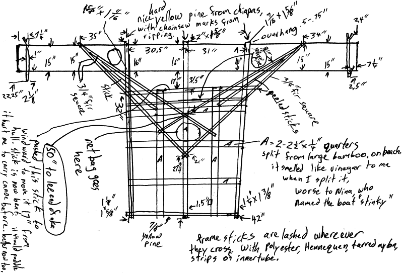Why are the diagrams kind of weird? Generally the diagrams show the boat as it is. Three sticks that do the same job will be three different materials and sizes. This isn't meant to be ideal, but it's useful to me.