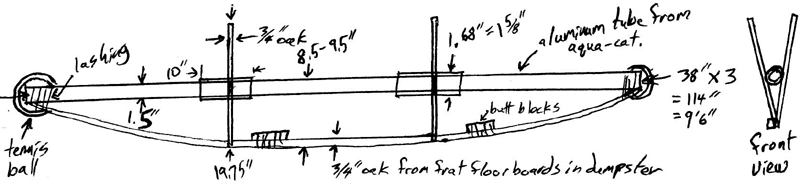 1.68"=15/8" butt blocks. aluminum tube from aqua-cat. 38"x3=114"=9'6"