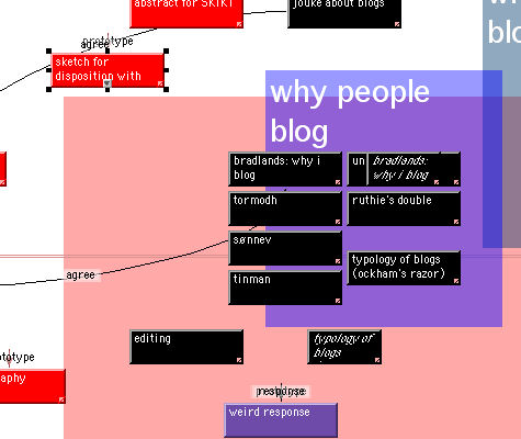The Visual Understanding Environment (VUE) project at Tufts UIT Academic Technology is focused on creating flexible tools for integrating digital resources into teaching and learning. VUE provides a visual environment for structuring, presenting, and sharing digital information. Using VUE's concept mapping interface, faculty and students design semantic networks of digital resources drawn from digital libraries, local and remote file systems and the Web. The resulting content maps can then be viewed and exchanged online. (to be explored)