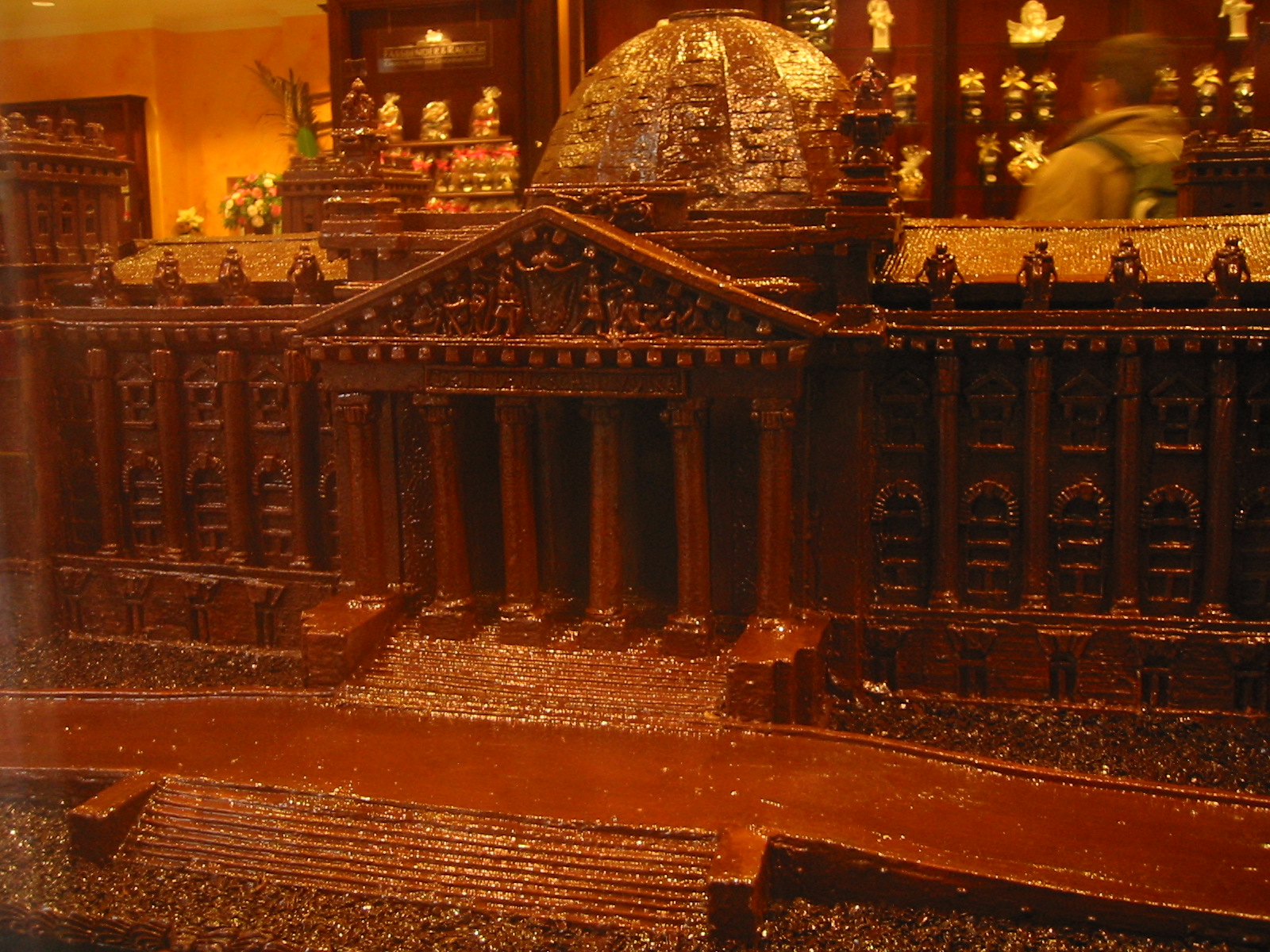 They had large sculptures made of chocolate, about a meter on a side, of the