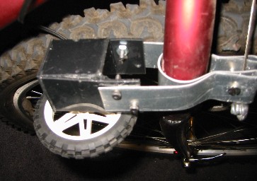 design: mechanics & casings A good place had to be found from which to take the rotational energy of the wheel. The pedals and center of the wheel were not chosen because of possible lack of standardization among bicycles. Although the size of wheels may vary, the clamp attachment allows flexiblity, and led to the choice of the top of the front wheel. The case for the batteries and circuit has to be small, lightweight, durable, and well-sealed. A combination of ABS and PET parts was used to make the battery storage housing, which is attached to the center of the handlebars. The motor also needs a durable case that will protect it from water and other muck that might get kicekd up into it. The current housing is made of ABS, though a more durable solution could have been found had the proper motor been chosen the first time. To keep them simple, flexible, and easily produced, the attachments to the bike frame are made of cut metal and clamped together with screws. |