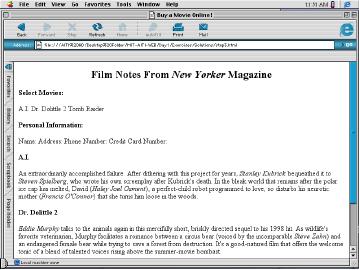 - "Select Movies" and "Personal Information" are size four headlines. The movie headings "A.I.", "Dr. Dolittle 2", and "Tomb Raider" are also size four headlines.